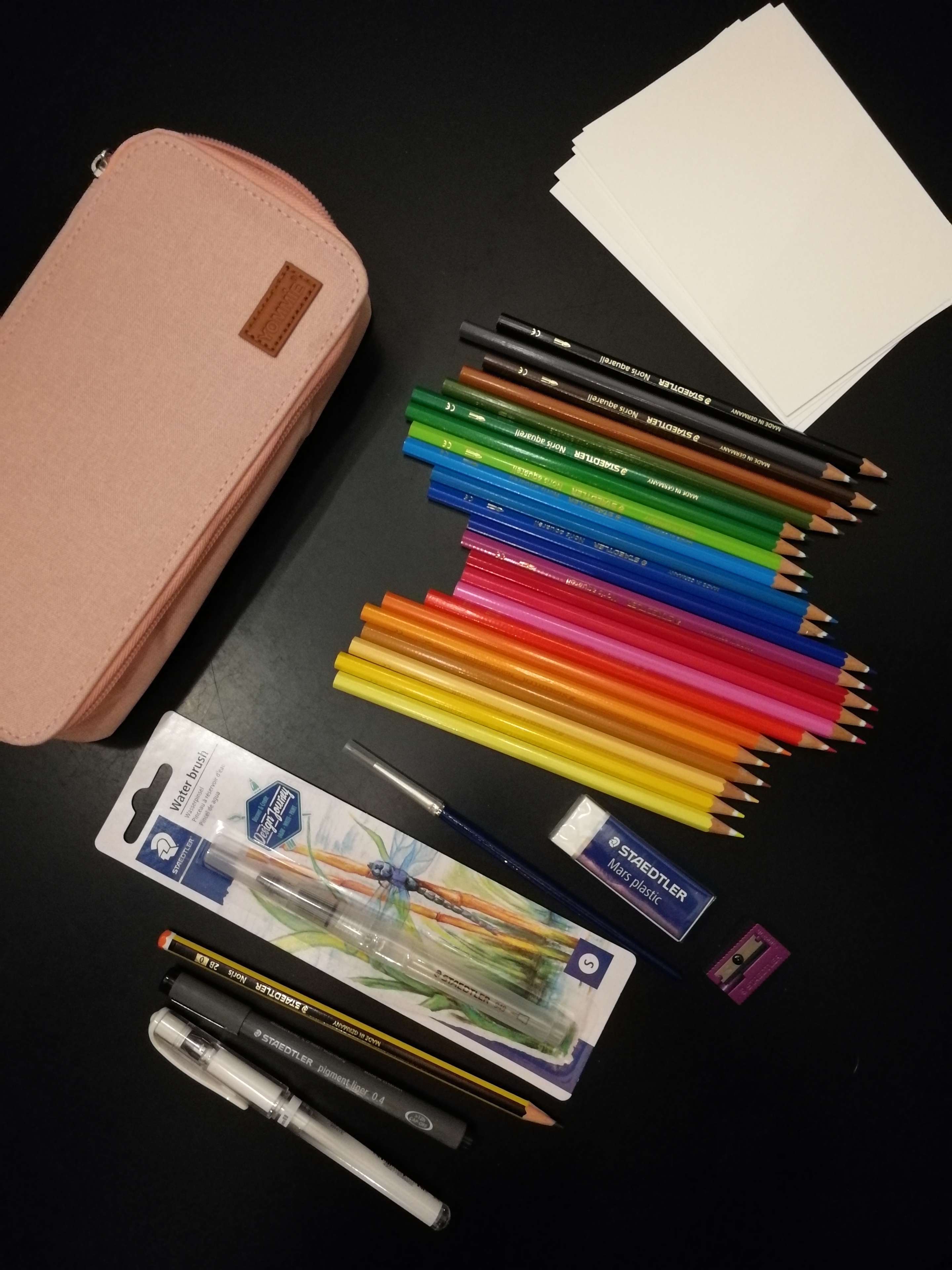 24 Aquarellbuntstiften, 1 Bleistift, 1 Radiergummi,
